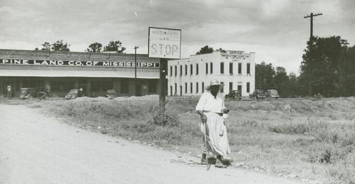 Company stores and offices and clinic of Delta Pine Company, Cotton Plantation, Scott, Mississippi Delta, Mississippi, October 1939. Photograph by Marion Post Wolcott. Courtesy of The New York Public Library, Schomburg Center for Research in Black Culture, Photographs and Prints Division, digitalcollections.nypl.org/items/510d47df-f8d7-a3d9-e040-e00a18064a99.