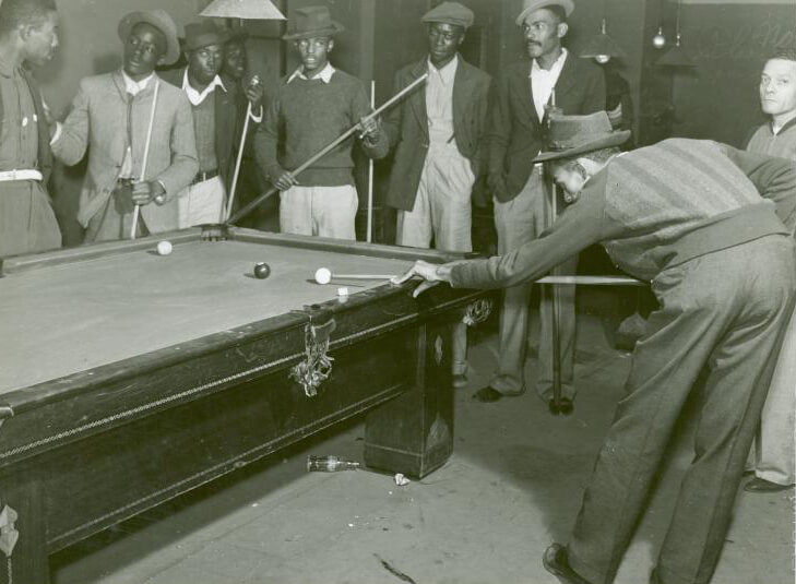 Shooting pool on a Saturday afternoon, Clarksdale, Mississippi Delta, Mississippi, November 1939. Photograph by Marion Post Wolcott. Courtesy of The New York Public Library, Schomburg Center for Research in Black Culture, Photographs and Prints Division, digitalcollections.nypl.org/items/510d47df-f8dc-a3d9-e040-e00a18064a99.