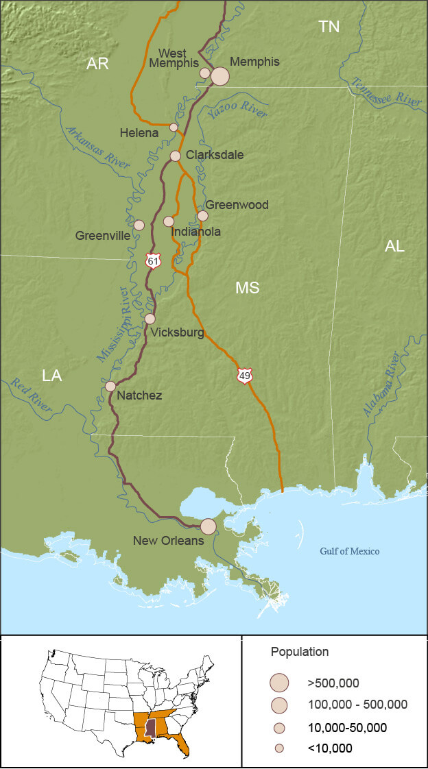 Mississippi Delta region. Map by Stacey Martin, 2006.