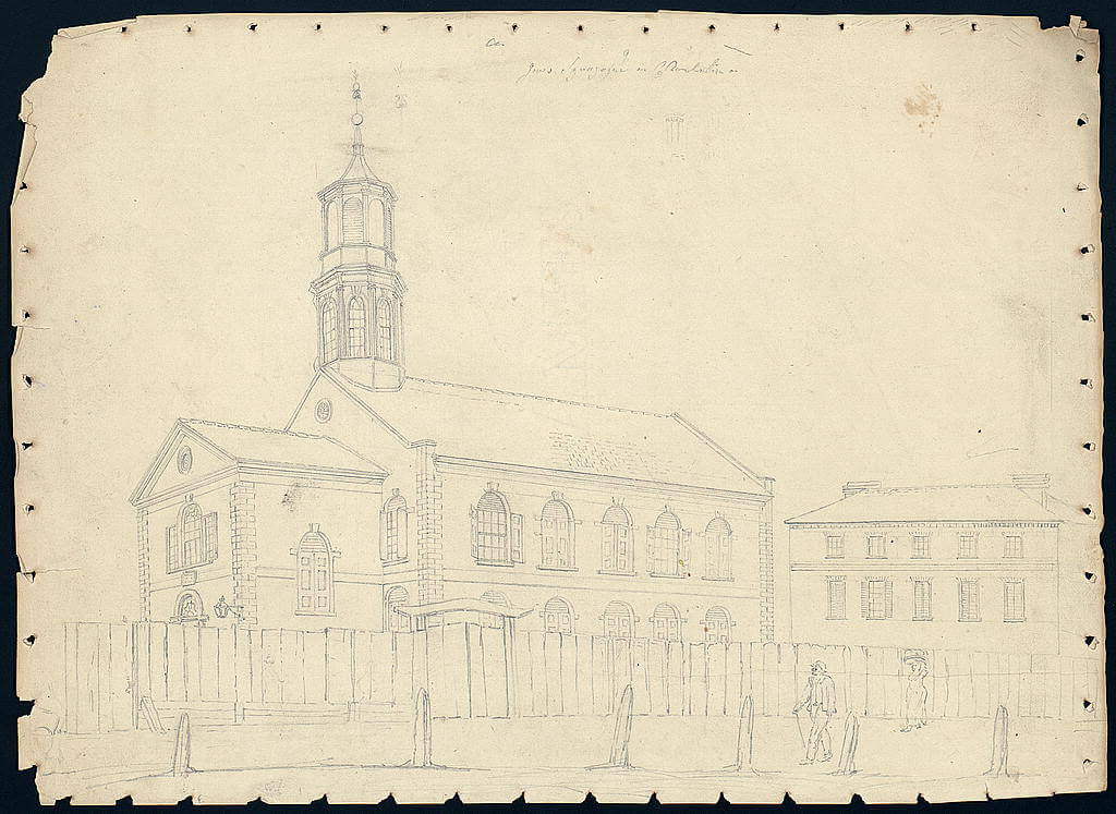 Synagogue, Charleston, South Carolina, ca. 1812. Graphite drawing by John Rubens Smith. Courtesy of Library of Congress Prints and Photographs Division, www.loc.gov/pictures/resource/ppmsca.05439/.