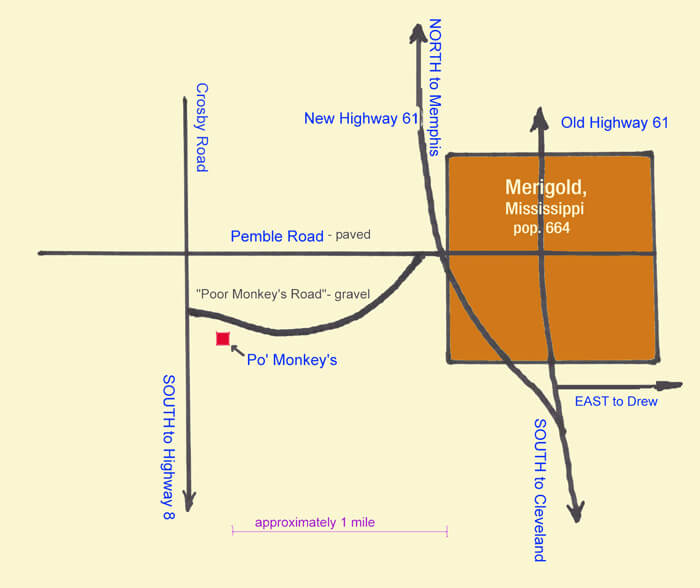 Poor Monkey's epitomizes the jook, the kind of place where the Blues was incubated until it gelled into a recognizable art form. As one local woman told me recently, when you go to a jook, you feel like everyone there is all one person, all sharing the same feelings.