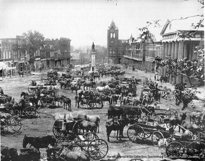 | Sale Day, Spartanburg, 1881 Photograph courtesy of the Herald-Journal Willis Collection, Spartanburg County (SC) Public Libraries. | |