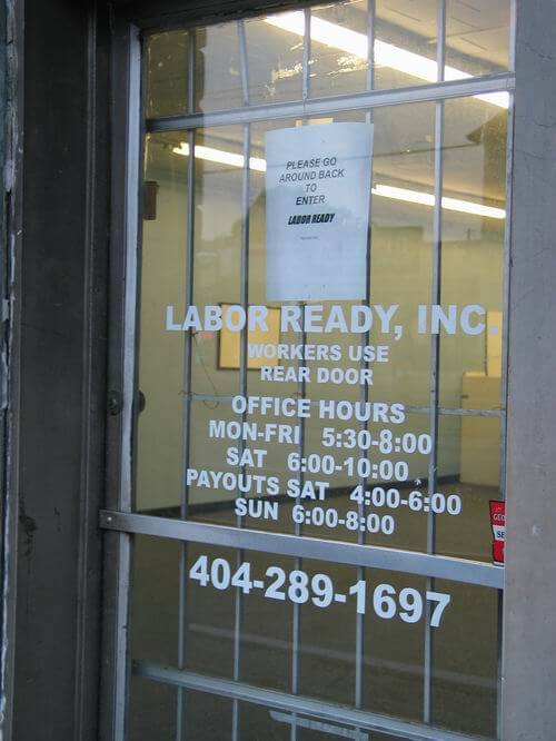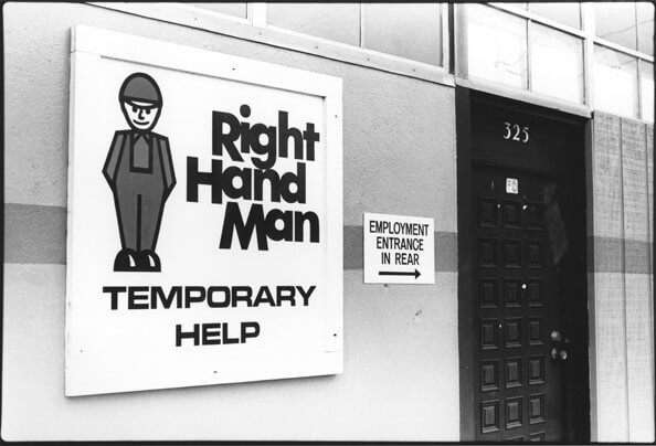 The temporary staffing industry (a central form of day labor employment) has firm roots in the anti-union South, especially in "right-to-work" states such as Georgia. The Georgia Department of Labor indicated that temporary staffing employment tripled in the state between 1980 and 1985.9Randall Williams, Hard Labor: A Report on Day Labor Pools and Temporary Employment (Atlanta: The Southern Regional Council, 1988), 14. Accurate demographic and statistical information on Atlanta's day laborers is difficult to procure not only because many day laborers are undocumented and therefore go unreported, but also because it was not until February of 1995 that the United States Department of Labor began collecting detailed data on contingent employment. For a vignette taken from Hard Labor see Williams' "Living the Day Labor Life." In Atlanta, the number of temporary staffing agencies doubled between 1978 and 1988.10Ibid., 13. For Kay Sheats, president of Industrial Labor Service, it was the dearth of unions that drew her temporary staffing company to Atlanta in 1987: "We researched Atlanta. We knew the growth. I know the business here. Any time there's no unions, there's the need for temporary work."11Ibid., 24. Labor Ready Real Estate Director, Vice President, and Purchasing Treasurer Bruce Marley discussed the growth of their temporary staffing offices in Atlanta: "We really like metro Atlanta. It's a good market for us."12Starner, "Help Wanted: Labor Ready Finds Workers Where They Live," Site Selection Magazine – Online (July 2001), https://siteselection.com/issues/2001/jul/p420/.