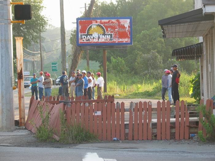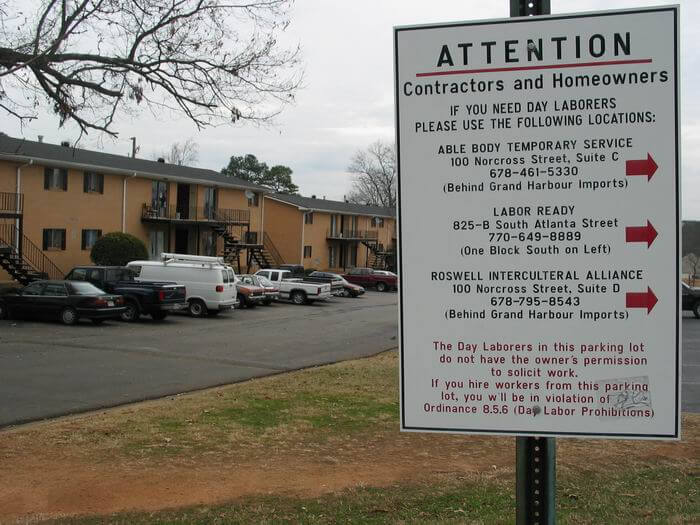 At catch-out corners, some nearby business owners and residents viewed day laborers with suspicion, scorn, and fear. As a result, some city councils and county commissions passed ordinances designed to forbid day laborers from congregating in designated areas. A different tack was taken in other locations. In Duluth, the police issued identification cards for day laborers who lived within the city limits, and imposed a fine on “outsiders” who traveled there to wait for work. In Decatur, the city constructed a covered bench that provided a modicum of comfort for day laborers.