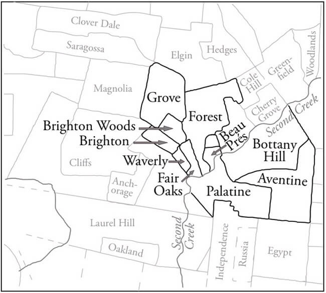 Plotters worked their neighborhood ties, especially kinship. From Brighton Plantation, the central locus of the conspiracy, Orange and Harvey, father and son, carried the planning to adjoining Waverly and Grove. Orange imagined the rebels making a circuit through his neighborhood, beginning at Brighton, then on to adjoining places, Waverly, Fair Oaks, Beau Pres, Forest, and back to Grove. These rebels made some progress in striking the necessary alliances between neighborhoods. And yet, if the conspiracy advanced along neighborhood lines, it also came undone here. Drawing slaves from other neighborhoods into the plot proved difficult.