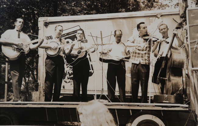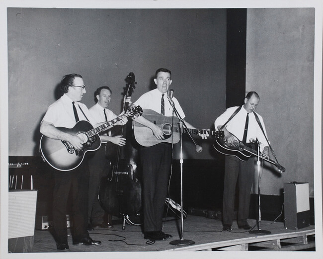 Lead by guitarist Robert Stephens, this band included Arnold McNeely, Charlie Powers, and Fred Haggard, young men in their early 20s who had all grown up in Whitman Hollow outside LaFollette. According to Stephens, the band formed in response to a contest sponsored by the LaFollette Southern States Co-op Farm Store — the winning prize consisting of a trip to Bristol, Tennessee, for the opportunity to make a demo recording. Garnering the attention of Walker, the Blue Valley Boys landed the Saturday night spot on WLAF. Recorded in the station's basement, the show was likely the first to carry the Tennessee Jamboree name. The near-synonymous relationship between the Jamboree and the Blue Valley Boys was one that would last nearly twenty-five years.