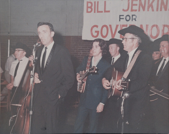 The show remained at LaFollette High into the early 60s and became "the place to be" for local LaFollette musicians. A changing assortment of talented pickers and singers joined the Blue Valley Boys on the Jamboree stage, including bass player, guitarist, and singer Red Harrison, and fiddler Dean Huddleston — both of whom had played with a southeastern Kentucky band called Pap and the Youngins, an ensemble that also sometimes included Collins and Queener. Collins and Harrison, as well as several other musicians later to join the Blue Valley Boys, also worked for what was locally dubbed the Big Shirt Factory, a major employer in the LaFollette area.