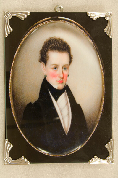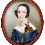 Alterations vary. In some cases they are used to question social codes that prevent display of non-normative sexuality. Responding to the rouge on a man's face or his carefully curled hair, for instance, Page may have added jewelry or further cosmetic touches to a portrait. Other miniatures gently poke fun at the repertory of poses typically used in portraits. One shows a brown and white rabbit peeking from a woman's bodice, while in another a man in Napoleonic-era clothing bears a rabbit on one shoulder as another rabbit leans over the frame as if to escape its limits.