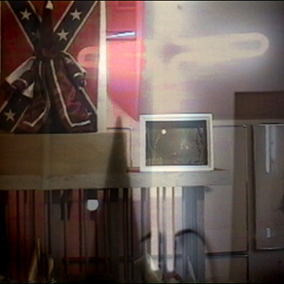 The blank silhouette that appears on the Wallpaper of Background Material and as the Portrait of Denmark Vesey also frames the scenes and sound track sampled in Welcome Home. The ironic title of Logan's video refers to the words of an older white woman welcoming a white family back to the plantation and its values. Images of a young white woman appear amid an army of hooded Klansmen, who celebrate their "protection" of her womanhood. These images alternate with scenes that include a smiling Uncle Remus, supposedly happy in the paternalistic embrace of slavery and Jim Crow, a black "coon" cat running scared from an unseen adversary, Civil War battles, and the face of a young black male (of the present as much as of the past) in the process of being erased. Logan digitally altered the imagery in his video to visually magnify its drama and draw attention to the frightening power of racial caricatures.