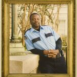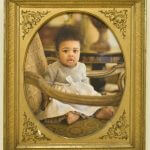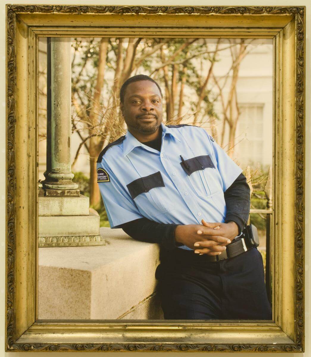 This wall installation, conceptualized by Juan Logan and Susan Harbage Page, juxtaposes paintings from the collection of the Gibbes Museum with photographic portraits by Page and a portrait painting by Logan, all in antique frames from the collection. Once grand, these aging portrait frames suggest the decaying porticoes of Charleston, now in the process of renovation.
