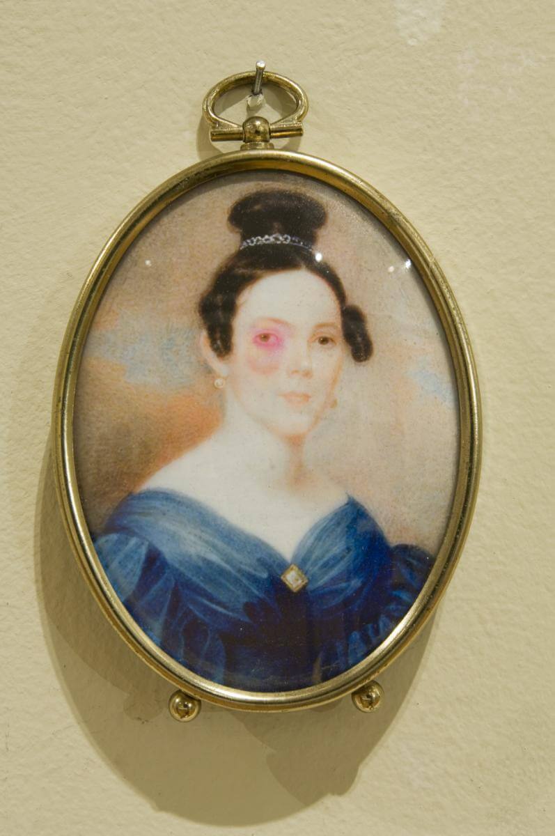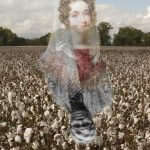 In other miniatures, images of slaves are overlaid on pastoral views of plantations or on cityscapes: reminders of the unacknowledged presence of the almost 2,500,000 slaves who lived and labored in the US South. These works reinscribe the presence of these slaves, so often omitted from representation. More controversially, topsy-turvy figures join the inverted torsos of planters and slaves, to suggest the necessity of the slave to the planter. Elsewhere, men and women have been painted in blackface, to reference minstrel shows that so disparaged African American culture. Women are also implicated. Elegantly dressed and coiffed, they may hold a leather whip or an iron slave collar. Or, in the case of one of Logan's alternations, they expose a toothy, savage grin, derived from caricatures of African Americans. Page and Logan placed Caucasian and African American hair together in some of the miniatures, referencing how these objects were treasured as keepsakes of a beloved other. The adding of hair from African Americans suggests the absence of blacks from the category of the treasured or even of the acknowledged.