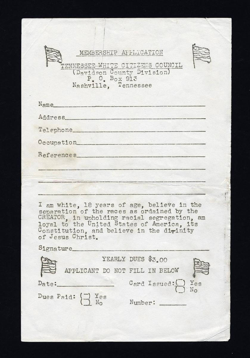 Section from Tennessee White Citizens' Council Application, Davidson County, TN. © Nashville Public Library.​​