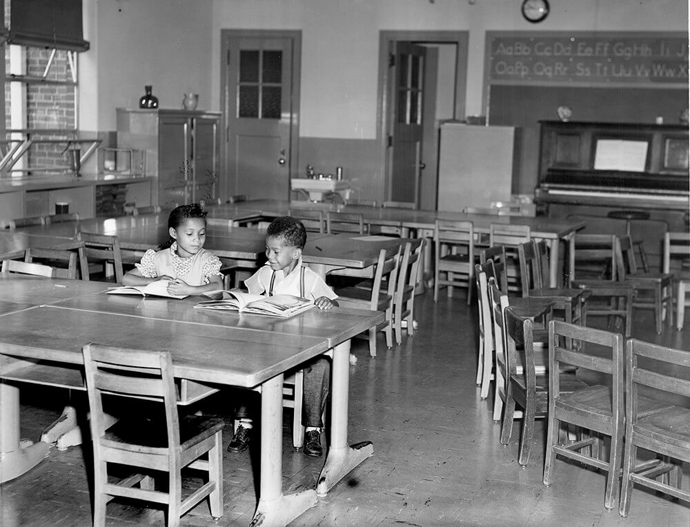 Lajuanda Street and a new classmate at Glenn Elementary, Nashville, TN, September 1957. © Nashville Public Library.​​