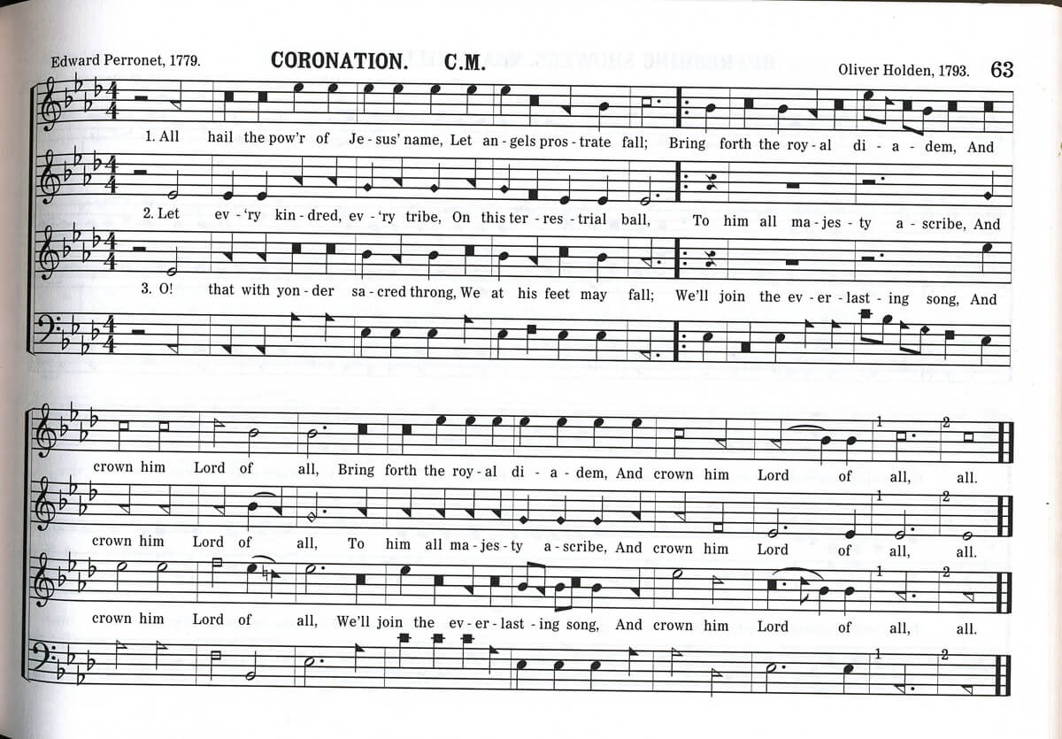 | 1. | Silas Lee chose three songs which he likely thought would be accessible to the festival audience: “Murillo’s Lesson” (#358, a secular song with text dating to the late 1700s), “Coronation” (#63, found in many Protestant hymnals as “All Hail the Power of Jesus Name”), and “Firm Foundation” (#72, also found in Protestant hymnals), during which Lee invited the audience to join in. |