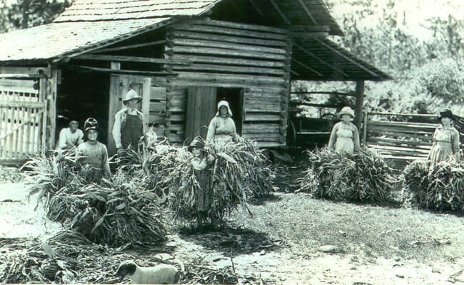 | The Chesser family putting fodder out to dry, Chesser's Island, Okefenokee Swamp. Photo by Francis Harper, courtesy of Delma Presley, July 1922. |