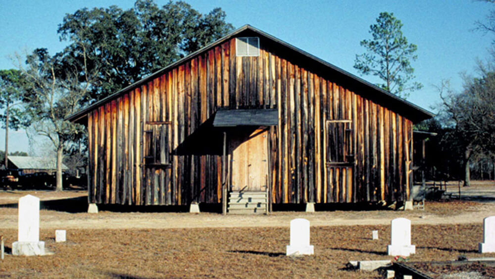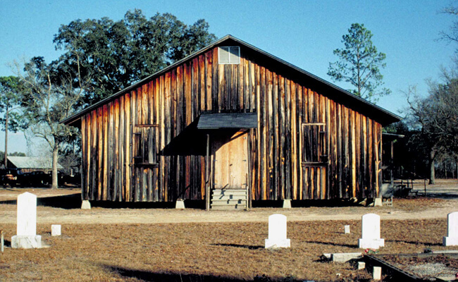 The oldest surviving meeting houses date to the early nineteenth century. High Bluff, Brantley County, Georgia, and Sardis in Charlton County, Georgia, both were constituted in 1819. Pigeon Creek of Nassau County, Florida, was founded in 1821, the oldest Baptist Church in the state.13John G. Crowley, Primitive Baptists of the Wiregrass South, University Press of Florida, 1998, 23. These spare, wooden buildings served as gathering places in the sparsely populated piney woods. Weekend meetings, and especially the annual or Big Meeting, fulfilled social and spiritual needs for rural families.