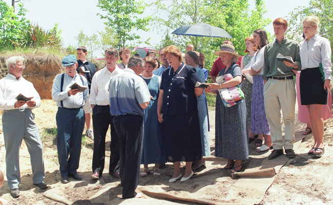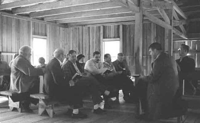 The Primitive Baptist faith was the dominant religious practice along the Okefenokee frontier through WWII and a key force in community religious, social, and cultural life. The term “primitive” refers to members' desire to follow the ways of the original or “primitive” Christian church. Clusters of like-minded Primitive churches band together in associations, rather than organizing as part of a formal denomination. As Delma Presley observes in Okefinokee Album,