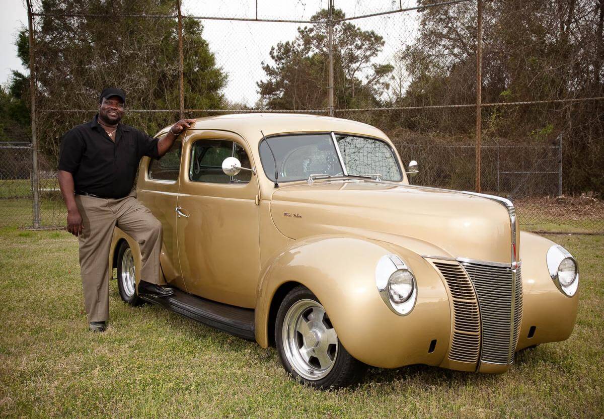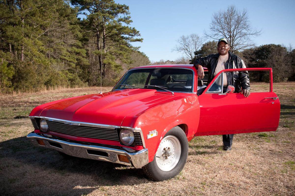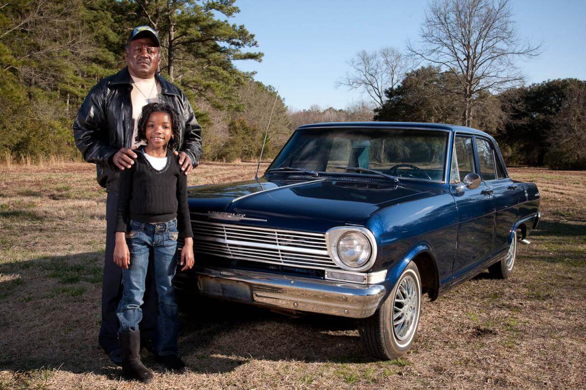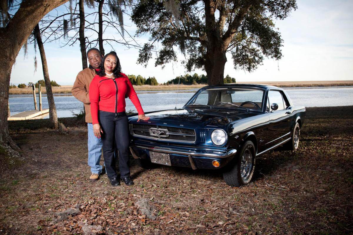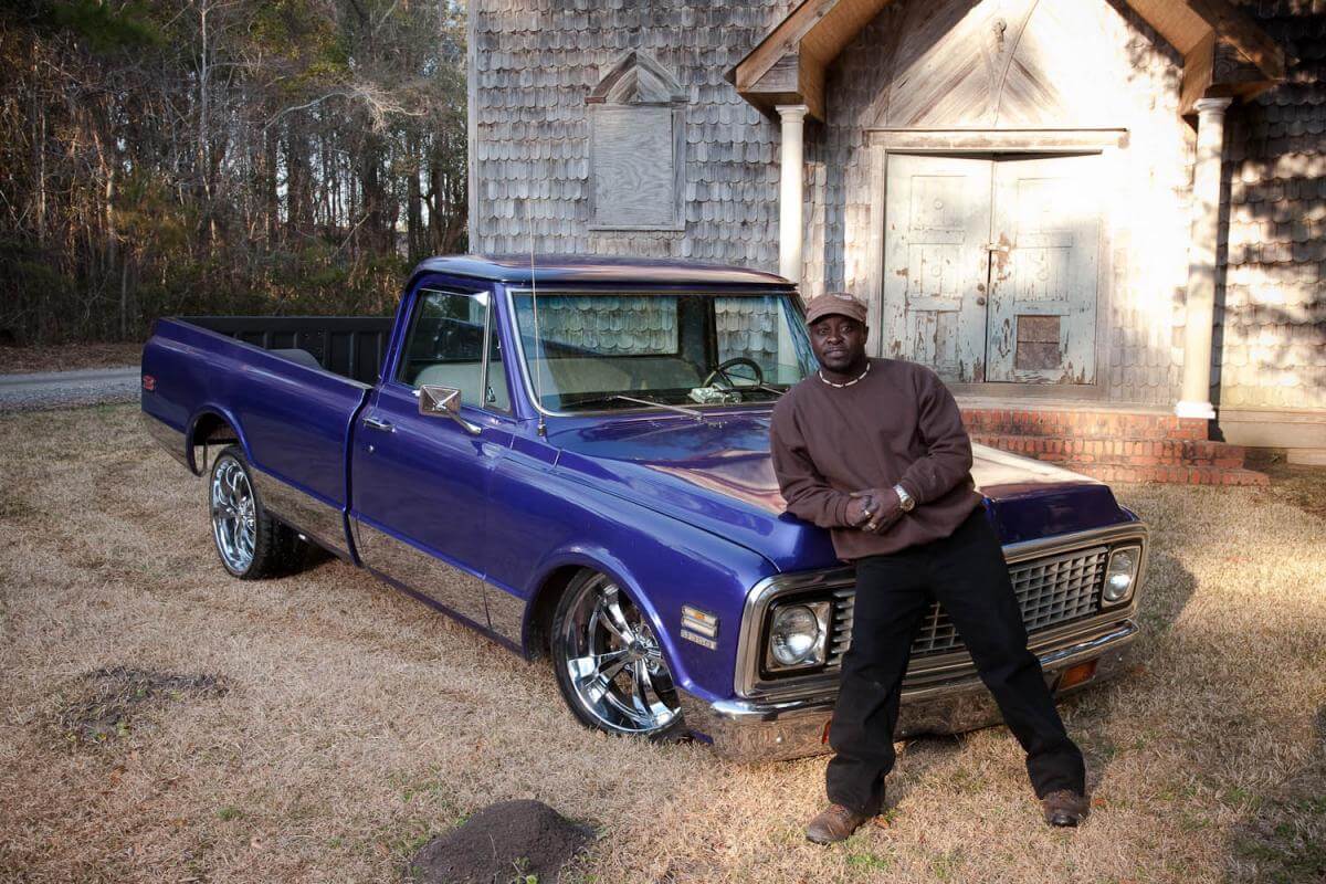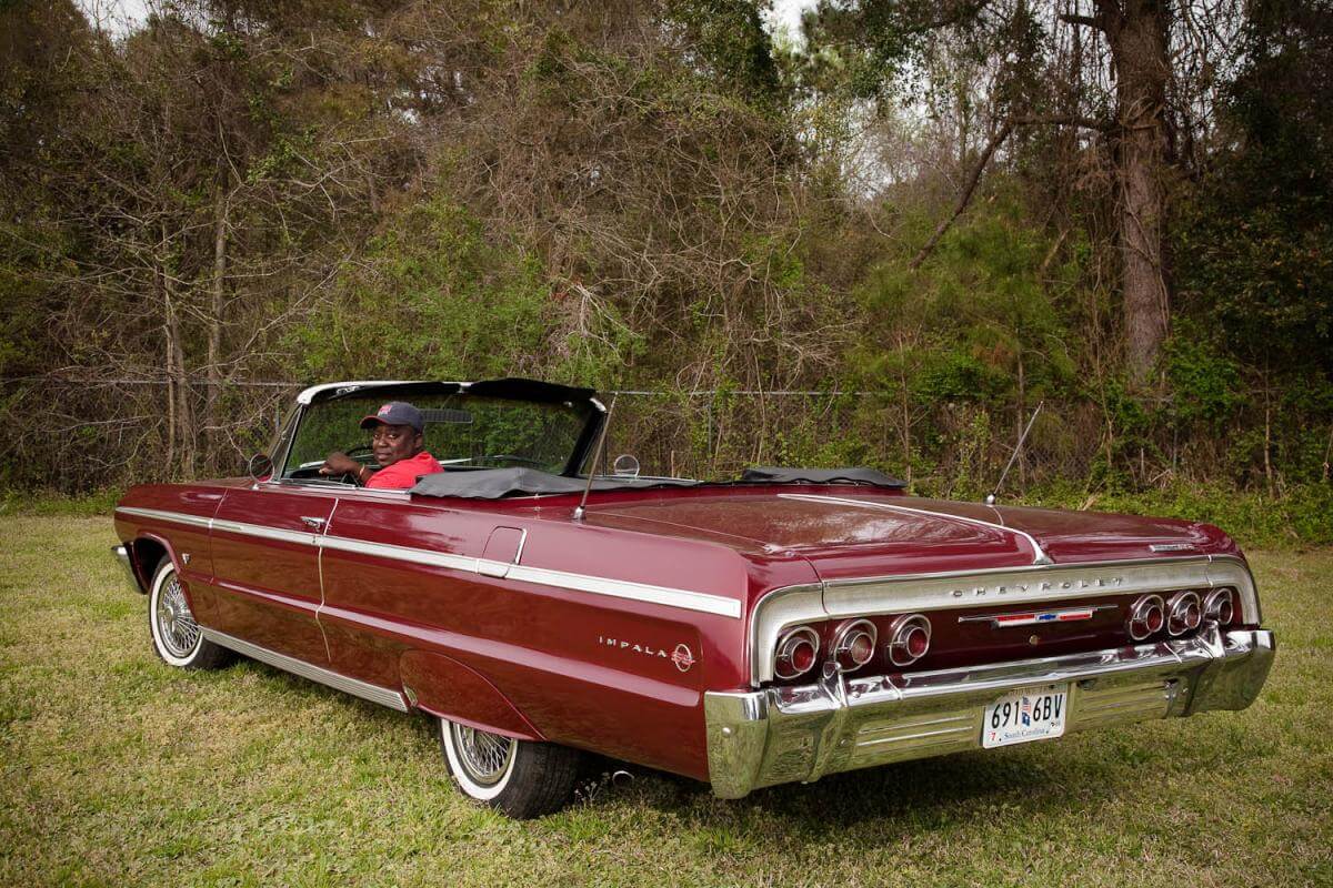 We wanted to photograph the members of the car club alongside their cars. They agreed. In exchange, each member would receive copies of the photographs. We worked in a straight-forward manner to best present the car and its owner. Car club members suggested locations for their significance in the local African American communities: Old Bethel A.M.E. Church, Buck Hall Landing, and Jeremy Creek in McClellanville, the Deer Head Oak, River Road near M&M Garage, Lincoln High School, and Thompson Hill Playground in Awendaw.