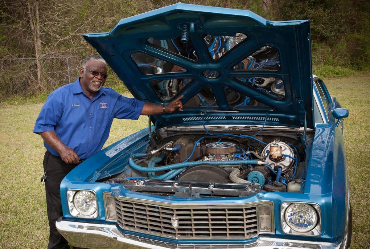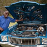 In addition to the town parades, club members regularly bring their cars to the annual Lincoln High School Homecoming and have driven in Fourth of July and Christmas events, as well as Charleston’s Martin Luther King Day Parade and the Emancipation Proclamation Day Parade. The club hosts events for Black History Month, as well as a car show and judging every year with raffle prizes and trophies given for various categories such as “furthest distance traveled” and “best in show.” Money raised by the car show goes to charities such as a children’s hospital, and helps purchase school supplies. The club joined with other area clubs such as the Corvette Club to support a benefit for Haiti. Aside from events and charitable activities, the club has a strong sense of pride in its work. Frank Ancrum talks about the joy of driving his beautiful car down the highway and living for “the moment when he passes a little kid who gives him the thumbs up” when he sees the cool car go past.