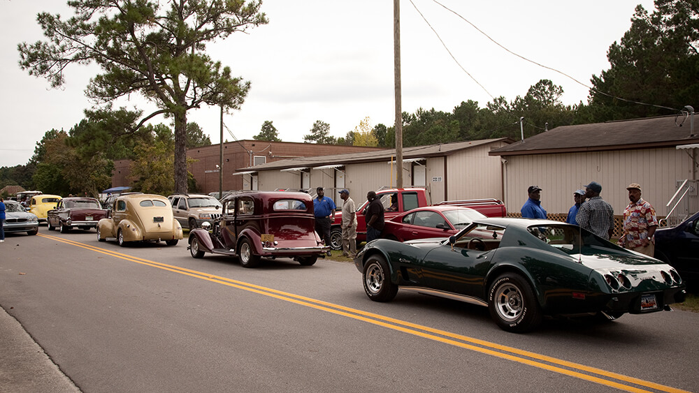 Low Country African American social life remains centered around churches and there is a strong spiritual camaraderie between car club members. As prescribed in the bylaws, Travelers members take turns every fourth Sunday visiting each other’s churches. These rules also extend to associates of the group: if a club member attends a different church than his wife or girlfriend, then that wife or girlfriend can also invite club members to visit her church. Club members drive their “old school” cars to church and afterwards go as a group to a restaurant for lunch or to a park where the members gather to talk and look over the cars.