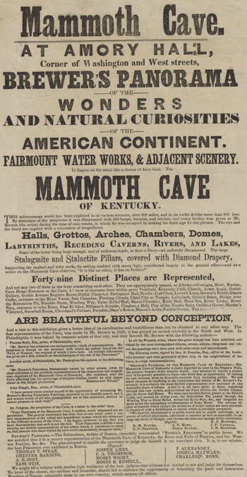 | Broadside advertising, George Brewer's Panorama of Mammoth Cave, c. 1849. Courtesy of American Antiquarian Society. |