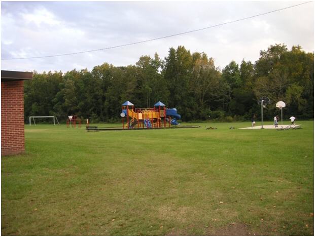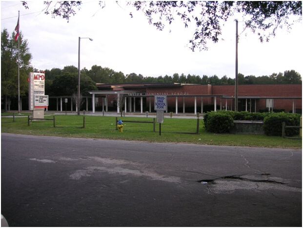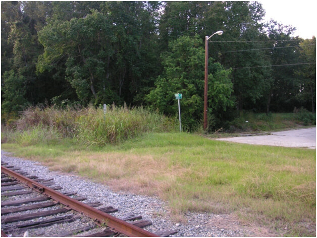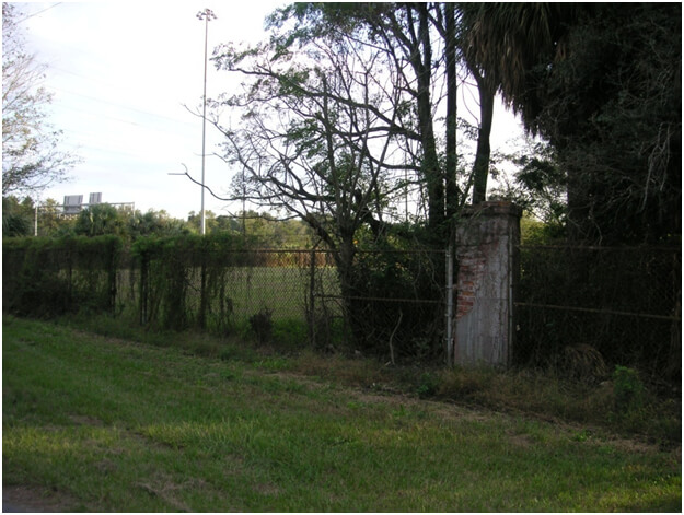 After the archival discoveries at GHS in Savannah, I visited the site of the former racecourse and found it mostly erased and hidden. Bifurcated by highway I-516, half the site is behind walls and a chain-link fence—currently part of a lumber yard owned by The Bradley Plywood Corporation.63Site ownership ascertained from a personal conversation with Tosca Owens, Planner, City of Savannah, November 2007. Owens is the planner who worked behind the scenes to ensure that redevelopment plans for West Savannah would not any longer disregard or be silent about the slave sale at the Ten Broeck Race Course. Across I-516, the other half of the race course site is now part of Bartow Elementary School. The trees shown are very likely growing in the infield of the former race course. At the southeast corner of the former Ten Broeck Race Course site is a paved section of Abbot Street, from which one can see the Central of Georgia railroad tracks.