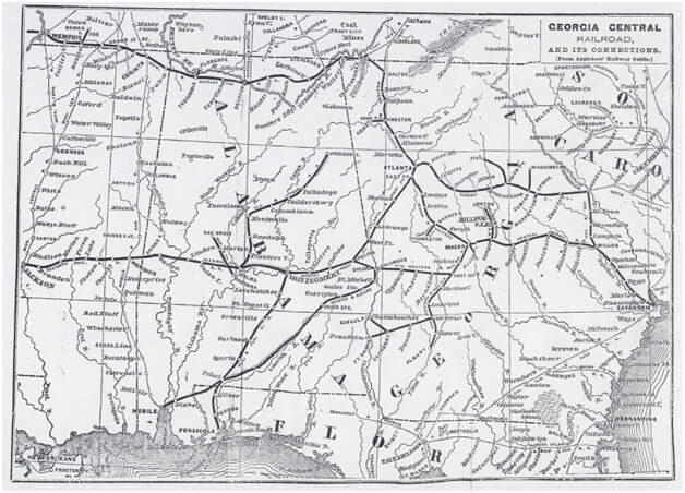 | 50. | Thomas Gamble, "A History of the Municipal Government of Savannah from 1790 to 1901," in Report of Hon. Herman Myers, Mayor, Together With The Reports Of The City Officers Of The City Of Savannah, Ga., For The Year Ending December 31, 1900: To Which Are Added The Commercial Statistics Of The Port, Reports Of Public Institutions, Ordinances Passed During The Year 1900, And A History Of The Municipal Government Of Savannah from 1790 to 1901 (Savannah, 1901), 170–177. The Central of Georgia Company was organized in December 1833; however, exact dates for when portions of rail lines were constructed are sketchy. Gamble (1901) is an excellent, but tedious source. See also, Ron Wright, "History of the Central of Georgia Railway," Central of Georgia Railway Historical Society, http://cofg.org/index.php?option=com_content/&task=view&id=77&Itemid=43, accessed August 11, 2006. |