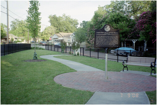 Because of the size of this sale, its effects upon those who were sold and their descendants, and the extent to which it inflamed the tensions leading to the Civil War, the Ten Broeck Race Course is an important cultural landscape and a place of heartbreak.4Keith H. Basso, Wisdom Sits in Places: Landscape and Language among the Western Apache (Albuquerque: University of New Mexico Press, 1996). Yet it was not until 2008 that the city of Savannah and the Georgia Historical Society placed a marker near the site of the sale.5The precise sale site is a quarter mile away, and not visible, from the commemorative marker. The significance of the Weeping Time sale and how the Ten Broeck Race Course came to be marked is the subject of this essay.