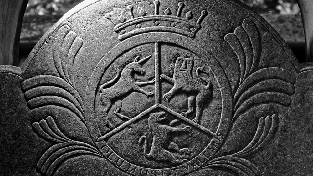 Daniel W. Patterson (photographer), The Reverend William Richardson headstone (1771), detail of the lower front, Waxhaw Presbyterian Church, Lancaster County, South Carolina. Gravestone attributed to the Bigham workshop.