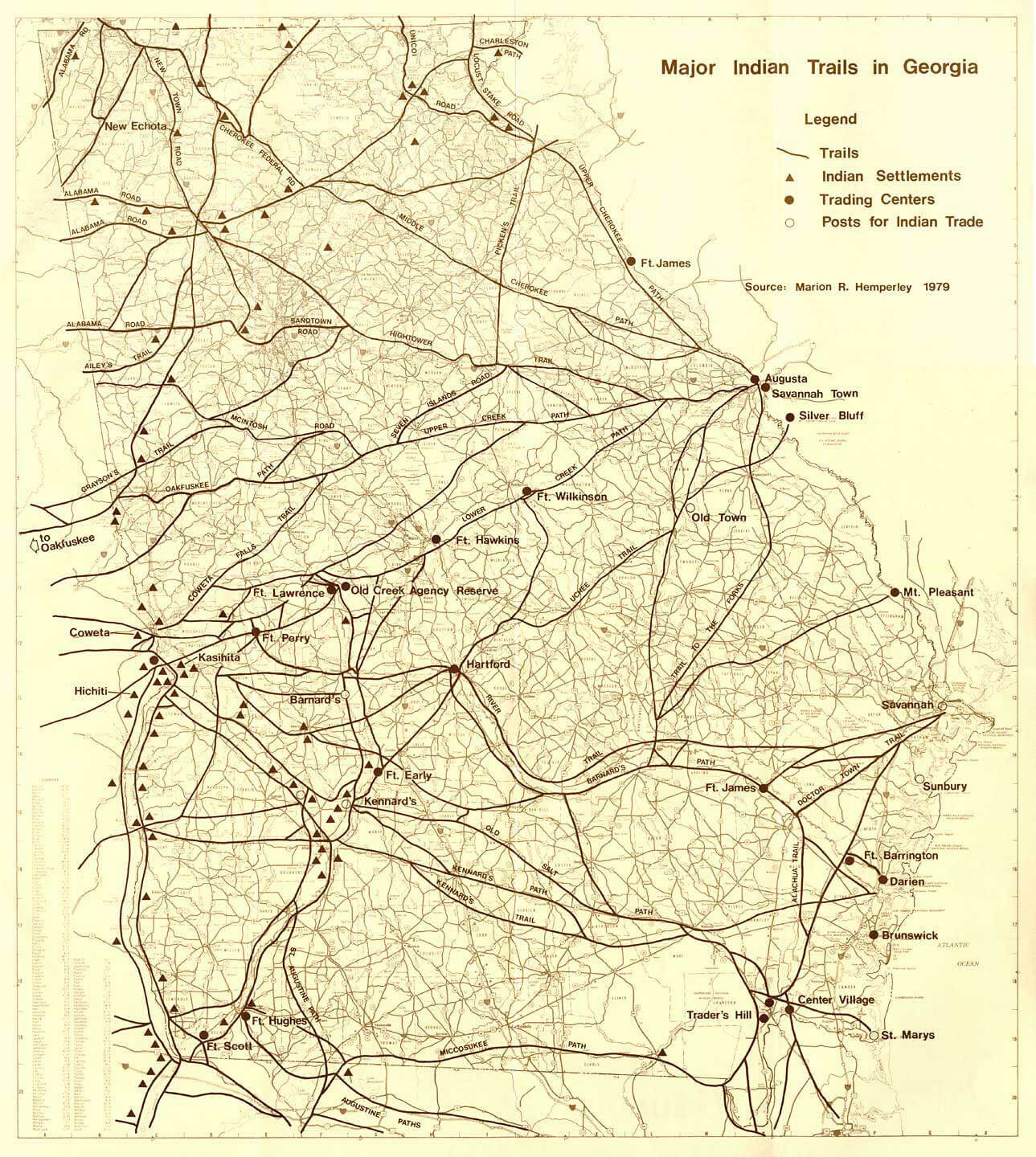 Marion R. Hemperly, Map of Indian trails in Georgia before removal, Office of Indian Heritage, 1979.