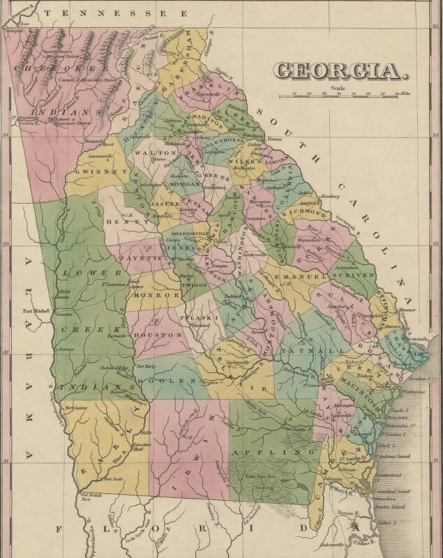 Anthony Finley, Map of Georgia, 1824, from The New General Atlas, Birmingham Public Library Cartography Collection, digitized by the University of Alabama.