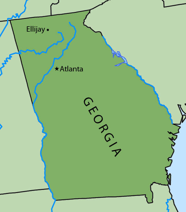 By 1832 Georgia’s drive to expel the Cherokees had led to the state’s extension of sovereignty over the portion of the Cherokee Nation that lay within her claimed borders (1828–1830). Cherokee and American gold diggers were busily working mines across the so-called gold belt of Georgia while the US Army and, subsequently, the Georgia Guard policed mining activities (1830–1835). After President Andrew Jackson signed the Indian Removal Act (1830), agents worked tirelessly to obtain a removal treaty from the Cherokees. Meanwhile, the state completed its survey and distribution by lottery of the Cherokee Nation’s land in Georgia (1831–1832). Ellijay now lay in the middle of Gilmer County, one of the ten new counties created by the legislature from the Cherokee Nation. In 1834, Ellijay became the Gilmer County seat.16In the same era Cherokees adopted a constitution establishing a republican form of government and a nation-wide judicial system (1827). Having declared their sovereignty and national boundaries the Cherokee Nation challenged Georgia’s actions in two Supreme Court cases (1830, 1832). The court declined to rule in the first case. Although the Cherokees prevailed in the second (Worcester v. Ga.), the federal government’s executive branch refused to enforce the decision.