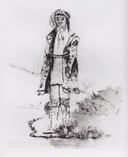 Mountain Cherokee (untitled sketch). Ink drawing in the diary of Lt. John Wolcott Phelps, 1838, Tebeau-Field Library of Florida History and the Florida Historical Society, Cocoa, Florida.