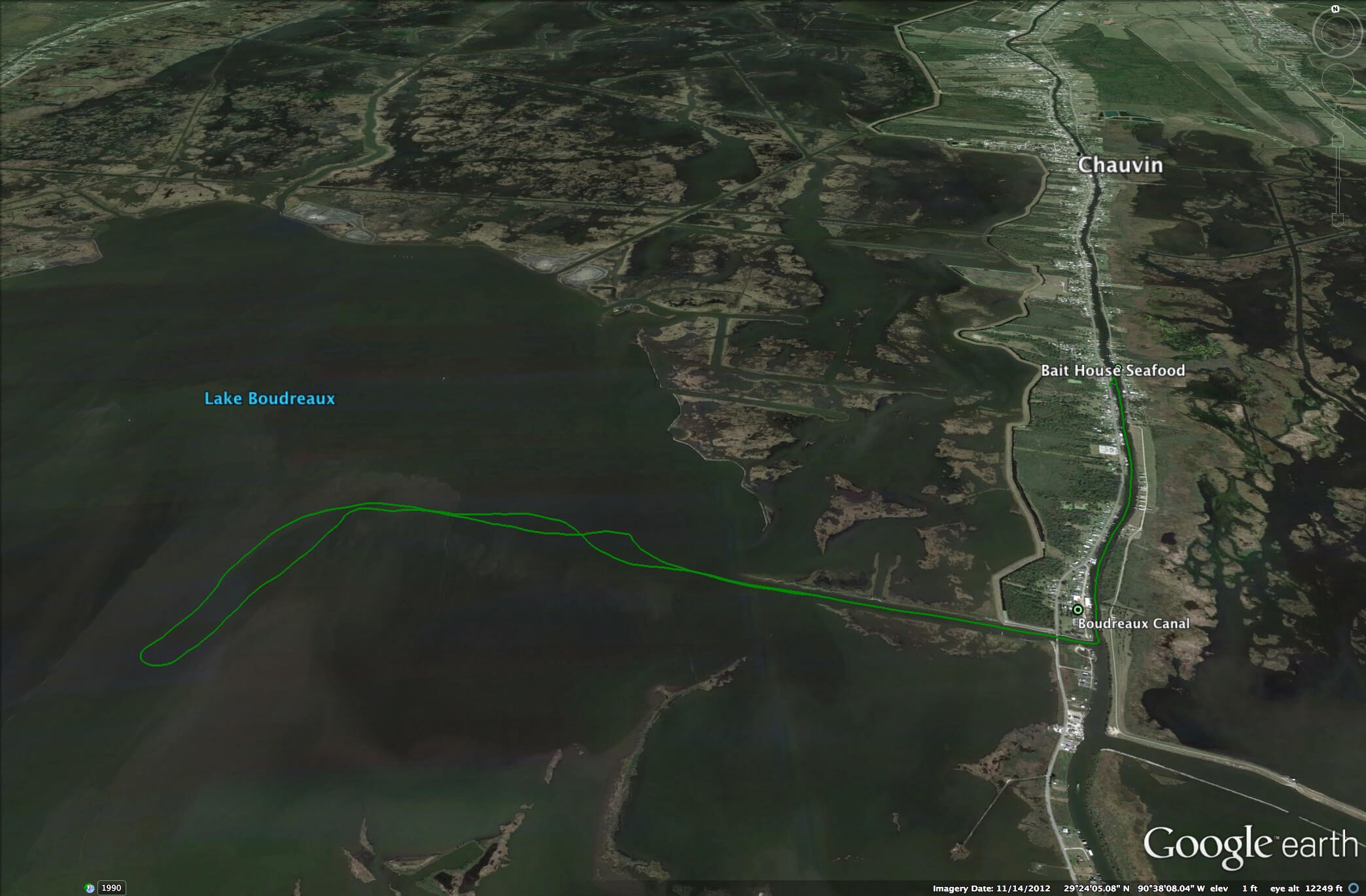 Trawling at dawn, route. Satellite imagery courtesy of Google Earth.