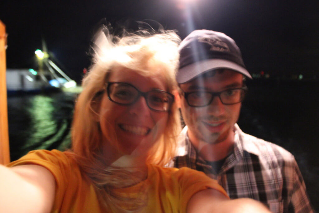 Selfie at dawn on a trawl boat, Chauvin, Louisiana, June 2013. Photograph by Lindsey Feldman.