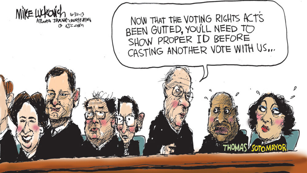 Voting Rights, June 30, 2013. Cartoon by Mike Luckovich. Republished by permission of Mike Luckovich.