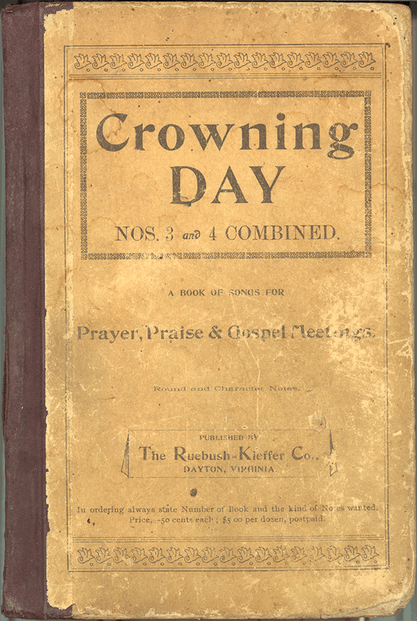 | Front cover of Crowning Day (Dayton, VA: Ruebush-Kieffer, 1900). Courtesy of Douglas Harrison. At the end of the nineteenth century and into the first three decades of the twentieth century, southern white gospel was dominated by convention singings that relied on the regular release of small octavo shape-note songbooks such as Crowning Day. |