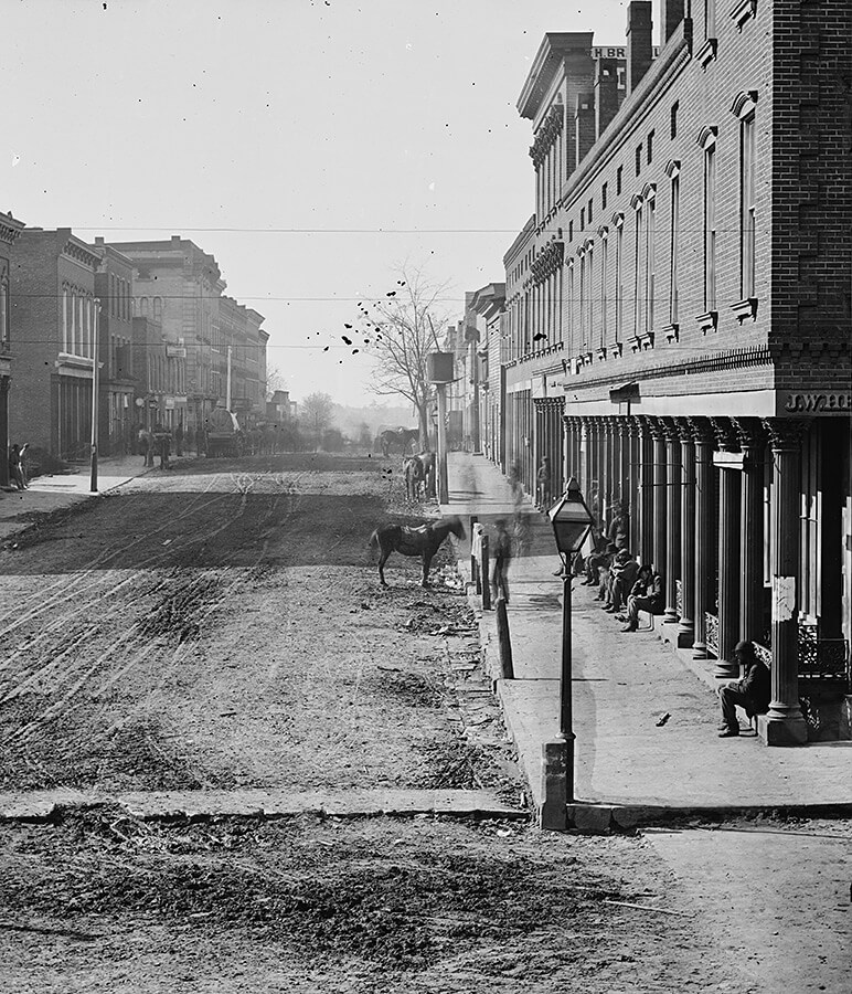 Whitehall Street, Atlanta's central business district, 1864. Wet plate negative by George Barnard. Courtesy of Library of Congress.