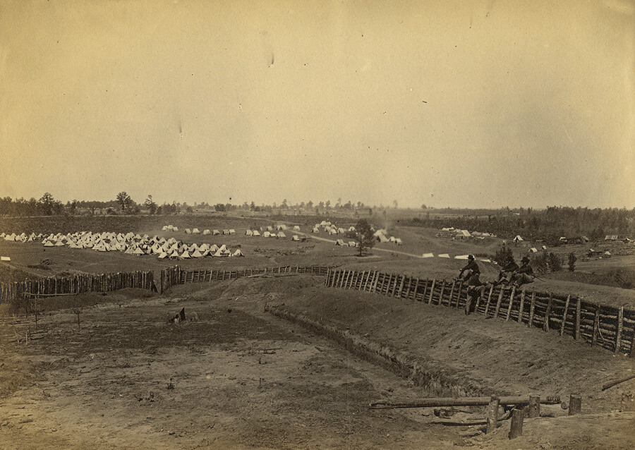 Fort Walker, located in present-day Grant Park, Atlanta, Georgia, with Union troops encamped north of the fort, October, 1864. Photograph by George H. Barnard. Courtesy of US Military Academy Special Collections.