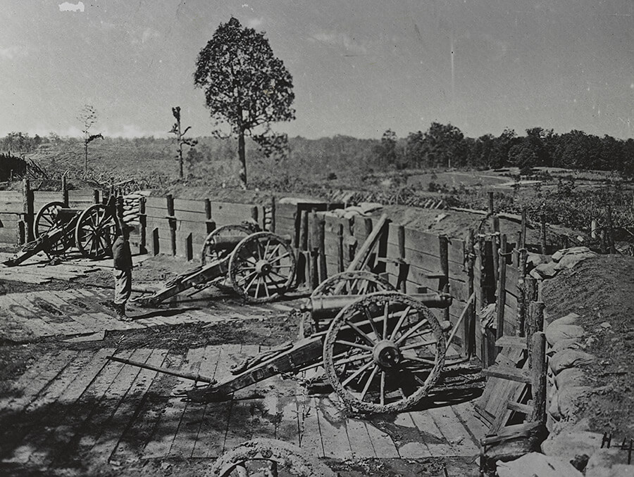 Confederate fort near Atlanta, Georgia, part of the city's inner ring of fortification during the Federal occupation, 1864. Photographic print by George H. Barnard. Courtesy of Library of Congress.