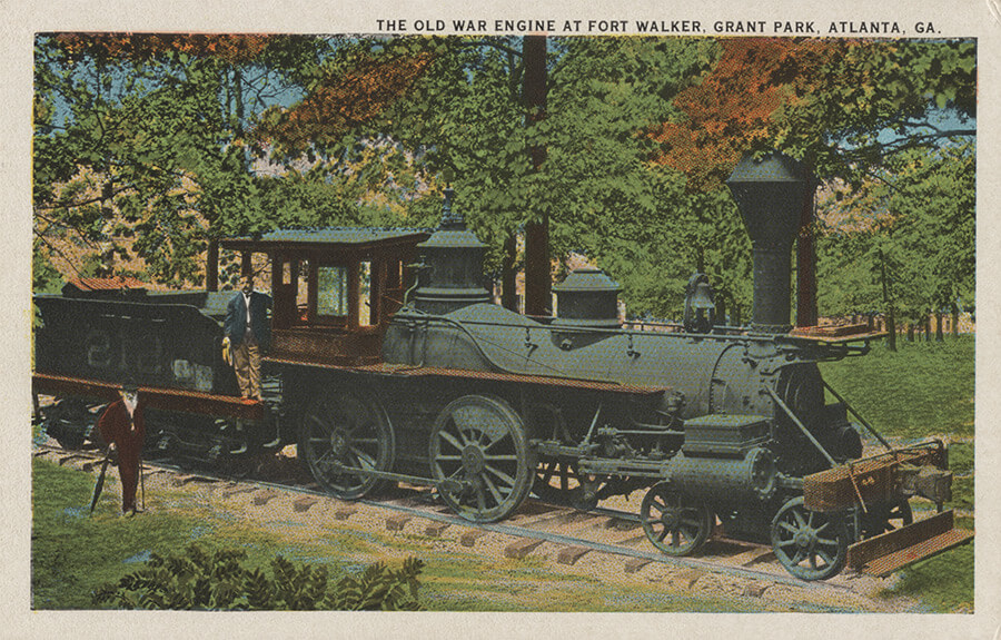Fittingly, the Fort Walker site in Grant Park is the sole remnant of the earthen works constructed under Lemuel Grant's supervision. Other remnants of Atlanta's defensive works were evident into the twentieth century, only to be obliterated in the post–World War II era by urban growth.27Ibid., 52. Fort Walker remains a notable Atlanta Civil War site, protected by its location in a municipal park but vulnerable to natural erosion and effacement by human visitors. It was first restored in the 1880s,28Gail Anne D'Avino, "Atlanta Municipal Parks, 1882–1917, Urban Boosterism, Urban Reform in a New South City" (PhD diss., Emory University, 1988), 42. after which it became a popular destination for visitors and a frequent subject of picture postcards. The fort was restored again in the 1930s, when the Works Progress Administration laid flagging stone—still present—to protect the broad area above the earthen wall, where the original Confederate gun battery had been placed.29Marguerite Steedman, "Atlanta Fort Restored," Atlanta Constitution, May 2, 1937, 7. Until they were removed in the 1980s, several Civil War cannons were on display at the Fort Walker site. At the time of the Battle of Atlanta, the city was completely encircled by over ten miles of carefully planned and well-constructed fortifications that stood on average one-and-a-half miles from the city's center. These strong defensive works were completed for the most part by April 1864. Their construction was supervised by Lemuel P. Grant, after whom Atlanta's Grant Park is named. Subsequent extensions of the city's defensive perimeter in the spring and summer of 1864 increased its length. Among the add-ons was Fort Walker, a small bastion located in the southeast corner of Grant Park that was originally constructed as a separate four-gun parapet and subsequently incorporated into the main defensive line.30Robert J. Fryman, "Fortifying the Landscape: An Archeological Study of Military Engineering and the Atlanta Campaign," in Archeological Perspectives on the American Civil War, eds. Clarence R. Geier and Stephen R. Potter (Gainesville: University Press of Florida, 2000), 53. The fort was named for Confederate Major General William H. T. Walker, who was killed in the Battle of Atlanta.