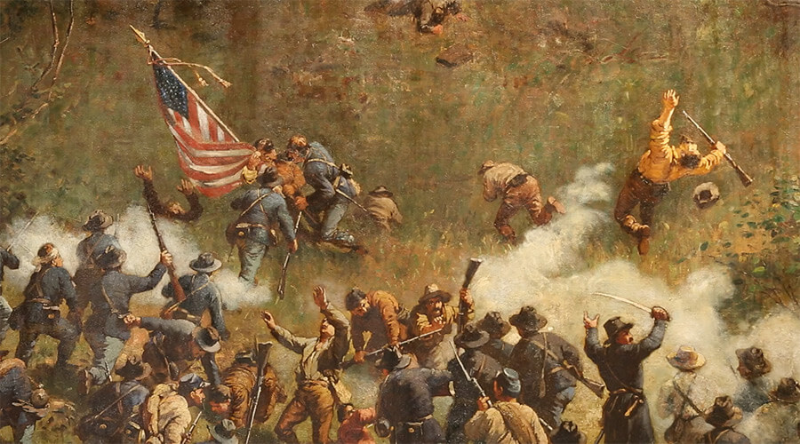 Confederate and Union troops in close combat, Battle of Atlanta Cyclorama, Atlanta, Georgia, 1886. Painting by the American Panorama Company.