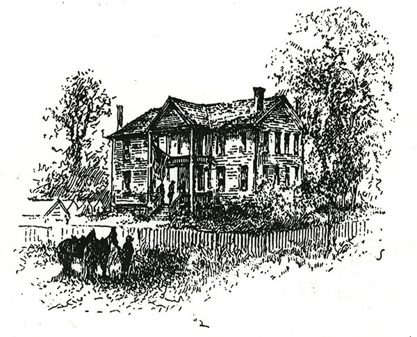 Augustus Hurt House, Sherman's temporary headquarters, Atlanta, Georgia, ca. 1864, Battles and Leaders of the Civil War, vol. 4. Sketch by Theodore Davis.