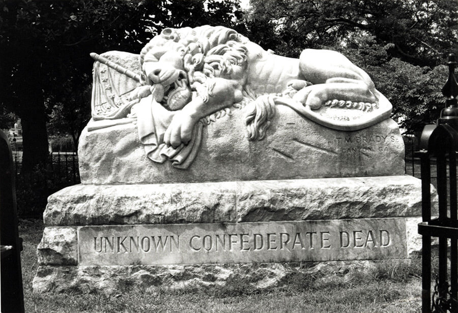 Lion of Atlanta, commemorating the unknown Confederate dead buried in the surrounding plot in Oakland Cemetery, 2009. Photograph by Matt Miller.