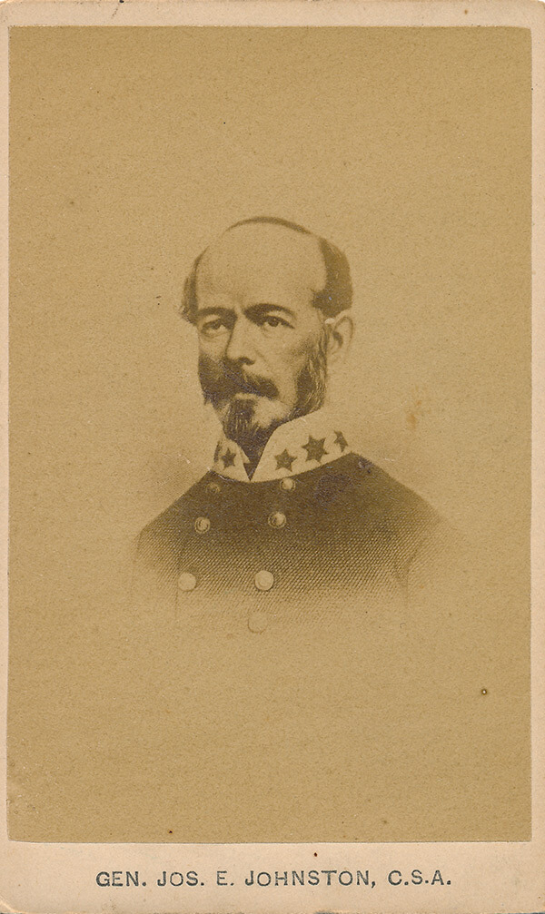 Confederate General Joseph E. Johnston, commander of the Army of Tennessee during the first months of the Atlanta Campaign. Albumen print.