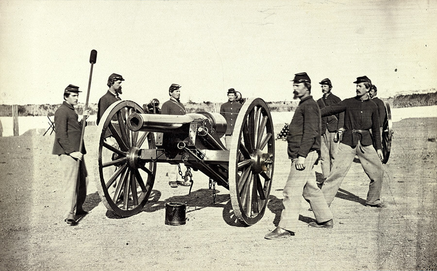 Rifled cannons and side arms in the Civil War were nineteenth-century technological innovations that had the potential to add substantial firing range and destructive power to both armies. Yet, gunfire between the opposing battle lines in the Civil War was typically mass volleying of rifled muskets shot at close range from linear ranks. The rifled musket's rate of fire was not fast enough in the Civil War to enable departures from standard battle lines, which resembled tightly packed Napoleonic formations. Artillery served mainly as weapons of support for infantry and cavalry, either in defending positions or bolstering attacks. Long range fire was the specialty of rifled cannons, enabling accurate cannonading at a mile and maximum ranges in excess of two miles. Casualties inflicted by artillery typically accounted for a small proportion of Confederate and Federal losses. The majority of battlefield injuries and fatalities resulted from rifle fire, and protracted shooting at close range, often under a hundred yards, characterized many Civil War battles. Firefights often dragged on until exhaustion set in or nightfall ended the combat for the day, as was the case in the Battle of Atlanta. Casualties mounted because the fighting lasted so long—approximately eight hours on the Atlanta battlefield—and less because of technological advances in weaponry.