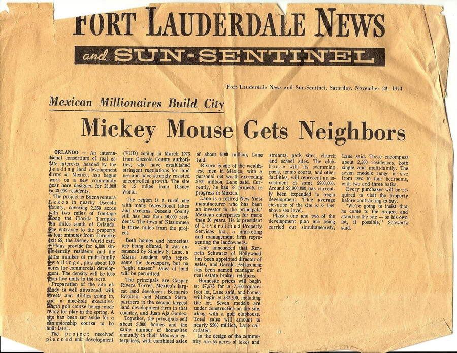 | "Mickey Mouse Gets Neighbors," Fort Lauderdale News and Sun-Sentinel, November 23, 1974. |