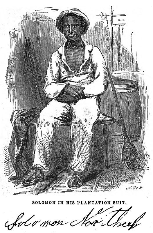 Solomon Northup in his "plantation suit," ca. 1853. Engraving from Solomon Northrup's Twelve Years a Slave (Auburn: Derby and Miller, 1853). From Archive.org.