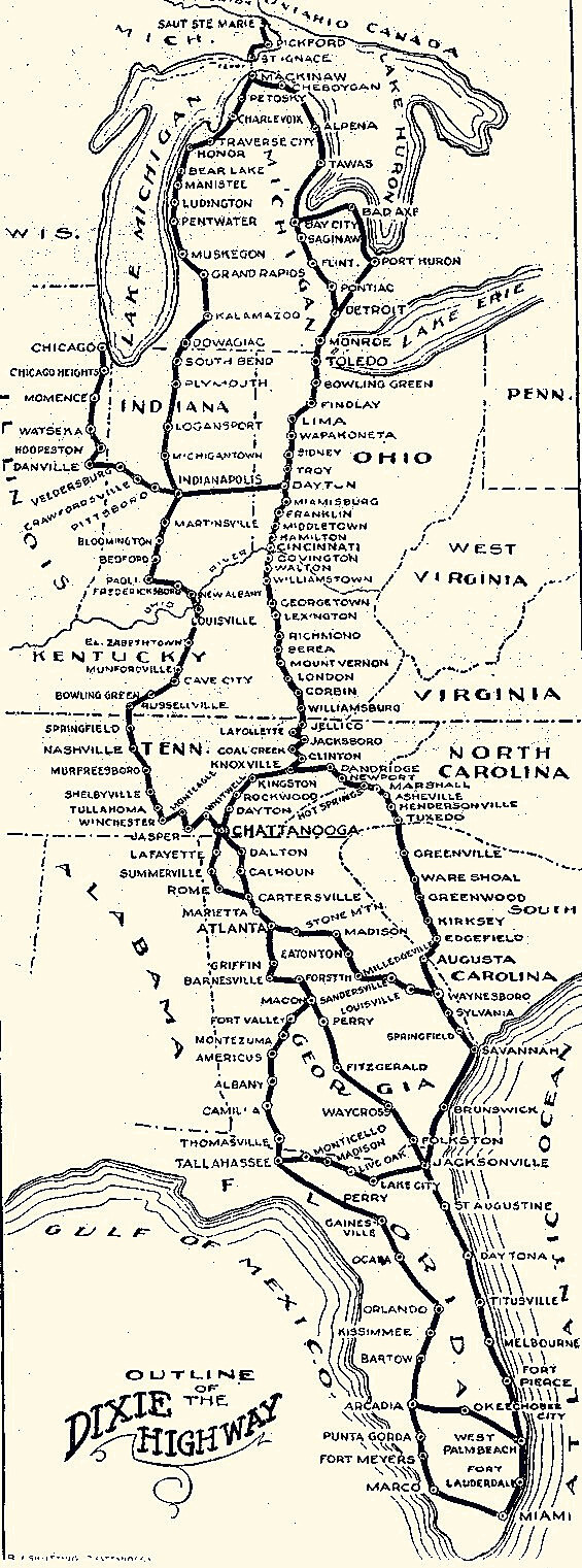 Outline of the Dixie Highway, The Dixie Highway Association, 1915-1927. Courtesy of Wikimedia Commons.