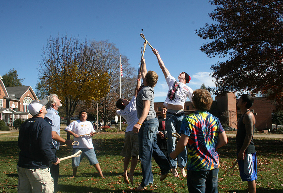 Cherokee stickball game, Liston B. Ramsey Center for Regional Studies, Mars Hill University, November 8, 2011. Photograph by Hannah Furgiuele. Courtesy of the Liston B. Ramsey Center for Regional Studies at Mars Hill University.